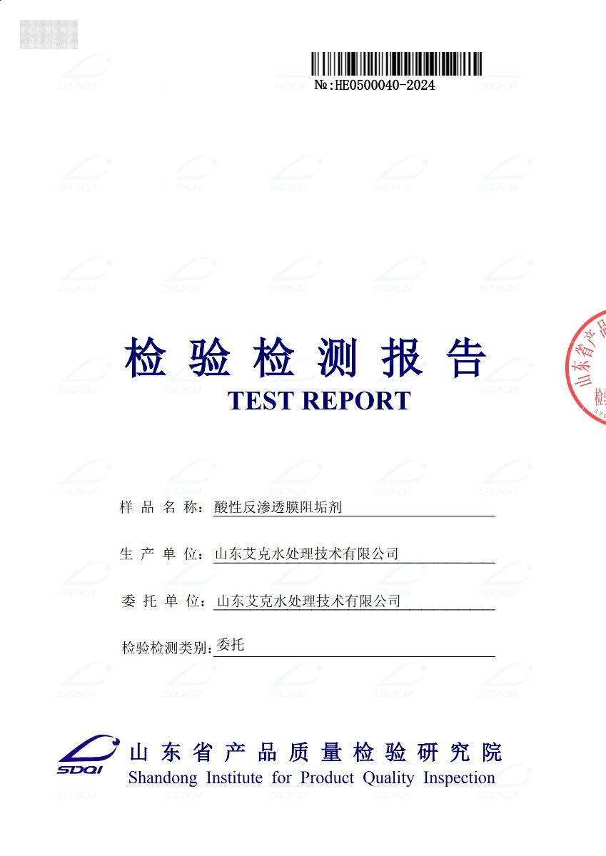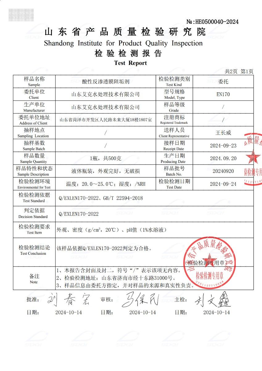 EN-170酸性反渗透膜阻垢剂检验检测报告