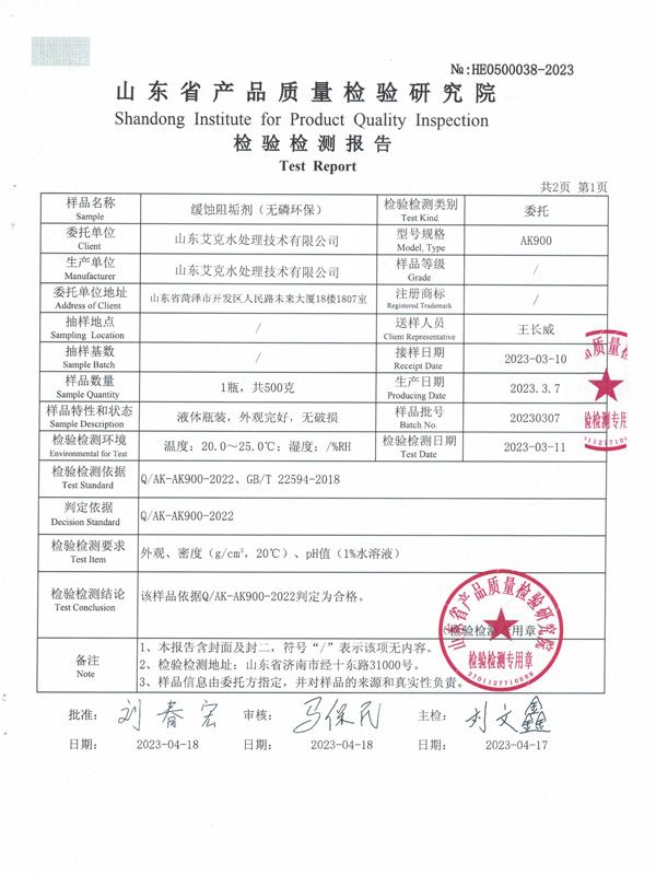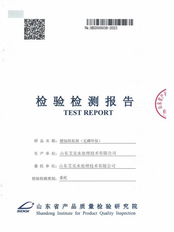 无磷缓蚀阻垢剂检验检测报告